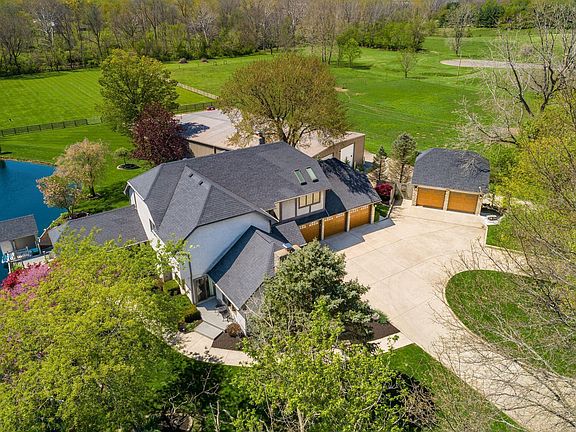 Unbelievable Property! One owner custom built home - Pride of Ownership throughout! 10.3 acres w/ 2 acre stocked pond w/ fountain - almost every room has a view of the pond! Tunnel from Fin Lower Level leads to 60' X 100' insulated heated steel building w/ upper level office & 2 half baths. Beautifully updated Kitchen w/ SS appliances, granite counters & tile back splash. Panoramic view of pond from Sun Room w/ 3 walls of windows. Living Room features cathedral ceiling, wood beams + floor to ceiling stone FP. Luxurious spa-like Master Bath features heated tile flooring, huge doorless entry walk-in tiled shower, double vanity, dressing area & hot tub overlooking the pond. Approx 5 Acres of Fenced Pasture. 3 car attached + 2 car det garage. See all pictures & attached features list.
