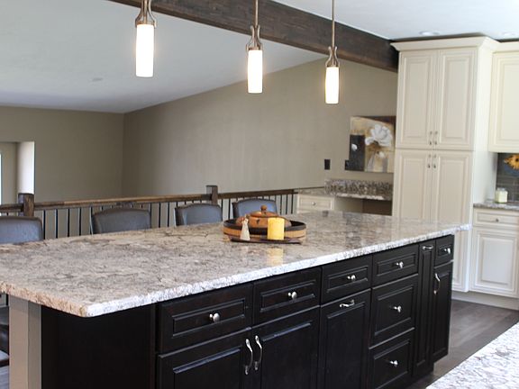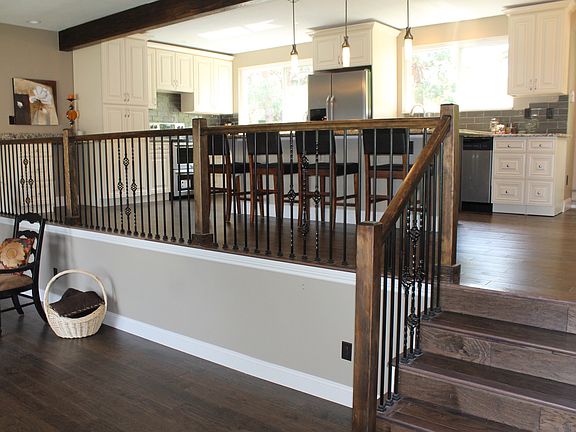 - Eating Space / Kitchen, Open Floor Plan, Kitchen Island, Master Bath, Master Suite, Updated, Window Coverings, Remodeled, Built-Ins, Heated Basement