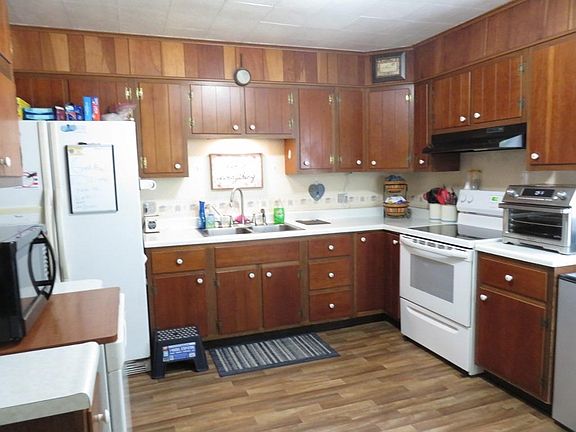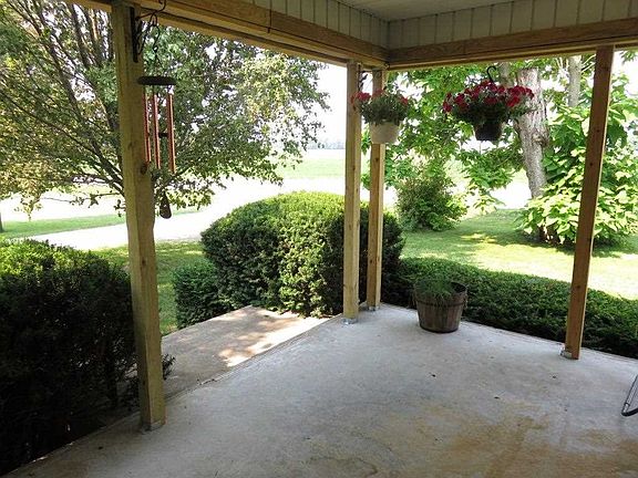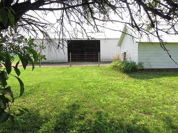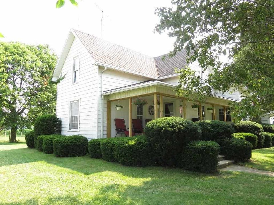 Enjoy sitting on the private covered front porch in the county 4 to 5 bedroom and 2 bathrooms solid farm house! NEW Gas Force Air Furnace with NEW Central Air on both floors!! New Well and has a New Pellet Stove in Living Room! Wood Swing out back under shade trees may stay! GIGANTIC MORTON POLE BARN IS 45 BY 72 has 3 horse stalls, water hydrant and basket ball goal, fun for all!!! Fenced in pasture! Also has 2 other outbuildings! Round horse ring, not included. Electric dog fence box reserved. Iron out system never used. Seller will remove wood in pole barn to unfinished room. New Roof being installed over garage!