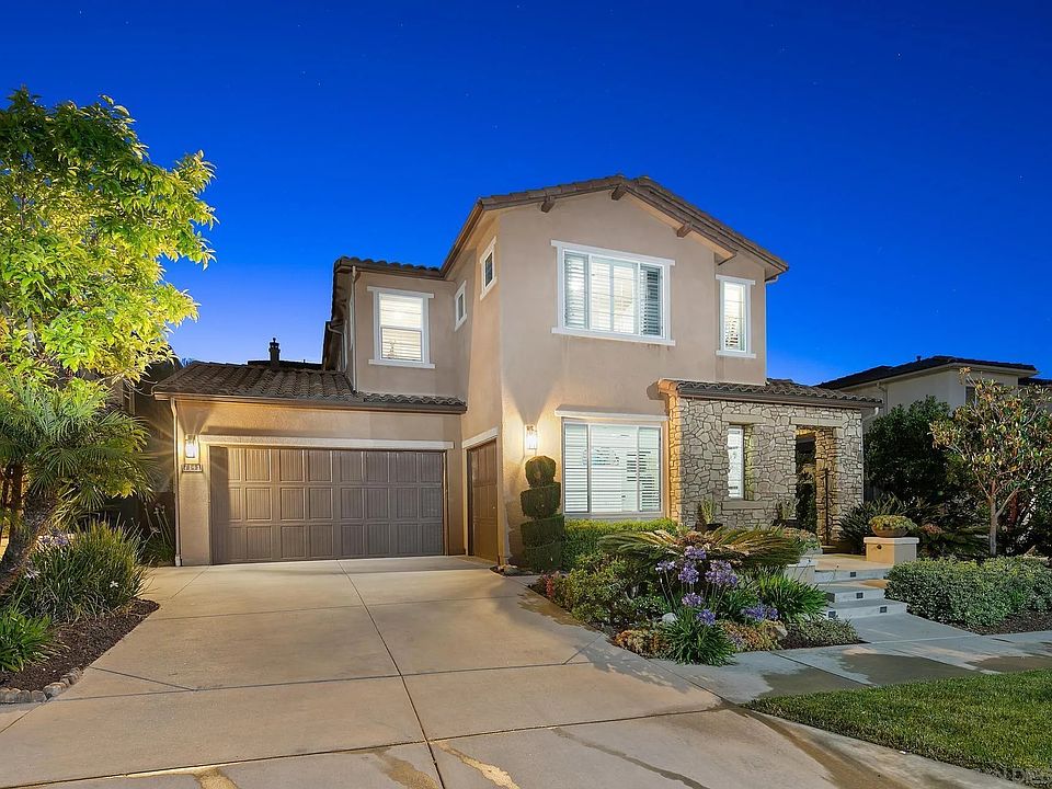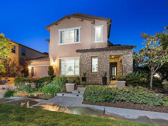 Welcome to this BEAUTIFUL home in the exclusive La Costa Oaks (North) community. Built by ColRich in 2012, this home is the highly desired B2 layout, and features a large open floor-plan with panorama doors, which open up into the back patio and make for an amazing entertaining space. As a true 4bd++ (downstairs: office, upstairs: loft/play room), this home offers flexible living options for everyone. Inside, you can see right away that the home has been impeccably maintained. The French Oak hardwood floor throughout the downstairs looks fantastic. All windows have high end wood shutters. The modern kitchen is huge, and features dual ovens, stainless steel appliances, and an oversized island, and opens up directly into the living room and dining area. There is a bedroom and en-suite bathroom on the entry level as well. Upstairs are 2 more large bedrooms (each with walk in closets), a laundry room w/ full sized side by side W/D, a loft/playroom and the master retreat. Aside from being a huge space, the master bathroom features TWO separate oversized walk in closets. Back downstairs, the 3 car garage has epoxy flooring, EV Charging, and custom cabinets built out. Solar Panels installed and lease may be transferred or bought out. La Costa Oaks has quickly become one of the most desired communities in San Diego County, thanks to the beautiful homes, and inclusion in the Encinitas School District The HOA includes a community pool (called The Splash), fitness center, multiple parks and open areas, and the cutest hiking trail, with views to the ocean.