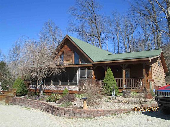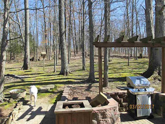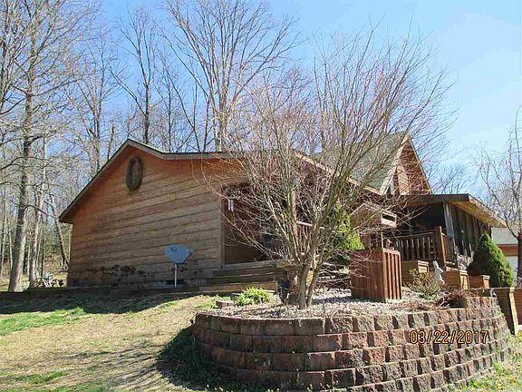 Lodge style cabin situated on a 2 acre lot. This distinctive home features a wraparound deck overlooking pond, inground pool (9' at Deepest end) and the surrounding countryside. The large kitchen has tile counter tops, breakfast bar, pantry, stainless steel appliances and a beautiful, beamed ceiling. The kitchen opens to the dining and living area that boasts a dramatic cathedral ceiling and a gas fireplace. There is a main level bedroom and full bath. The upper-level primary bedroom also has a cathedral ceiling with loft overlook. There is an en-suite bath and an in-room, heart-shaped jetted tub located in a window providing relaxing nature views. The lower level provides a family room with a second gas fireplace, another bedroom with brand new carpet and full bath as well as a custom bar, display cases, laundry room and access to the patio/pool area. A detached 2 car garage includes a 270 SF finished workshop/studio with bath. Current owners have put on a new roof & gutters, freshly stained exterior, and fence, the pool has a new liner, filter, pump and equipment, and done extensive landscaping. Other improvements include a new refrigerator, new washer, HVAC 5 years old and water heater is 3 years old. Custom log cabin style wood furnishings are available on a separate bill of sale. See attached document for a complete list. This country setting near Whitehall is only a 15-minute drive to shopping and I-69. Well water, septic, REMC Electric, Ferrell Propane, Smithville Internet, Direct TV, and AT&T Mobile. Schedule your private showing today! Note: *The old soda cooler by the pool has not been used in years and does not work.