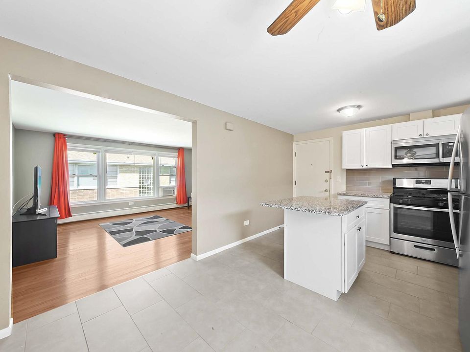 Remodeled beautiful spacious 2 bedroom apartment for rent on a highly desirable Riverside Dr in south Berwyn. Top Floor. Completely updated, new kitchen cabinets, granite countertops, stainless steel appliances. Hardwood floors throughout. New windows. Amazing location, close to public transportation, walking distance to Morton West high school, across the street from the public library. Tenant pays electricity and cooking gas Updated common areas, fresh paint, new carpets, new laundry room with 2 washers and 2 dryers. Parking included. Available 9/1 Requirements: -income minimum 3x the rent -one month security deposit -no criminal record -no evictions -no pets -no smoking Application fee $23 per person. Owner is a licensed Illinois real estate agent.