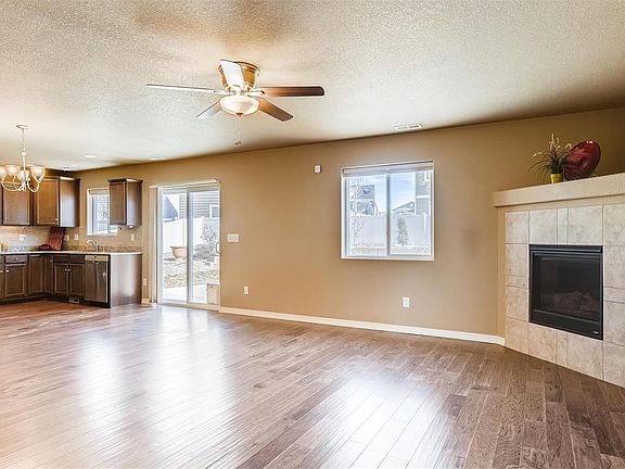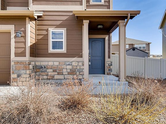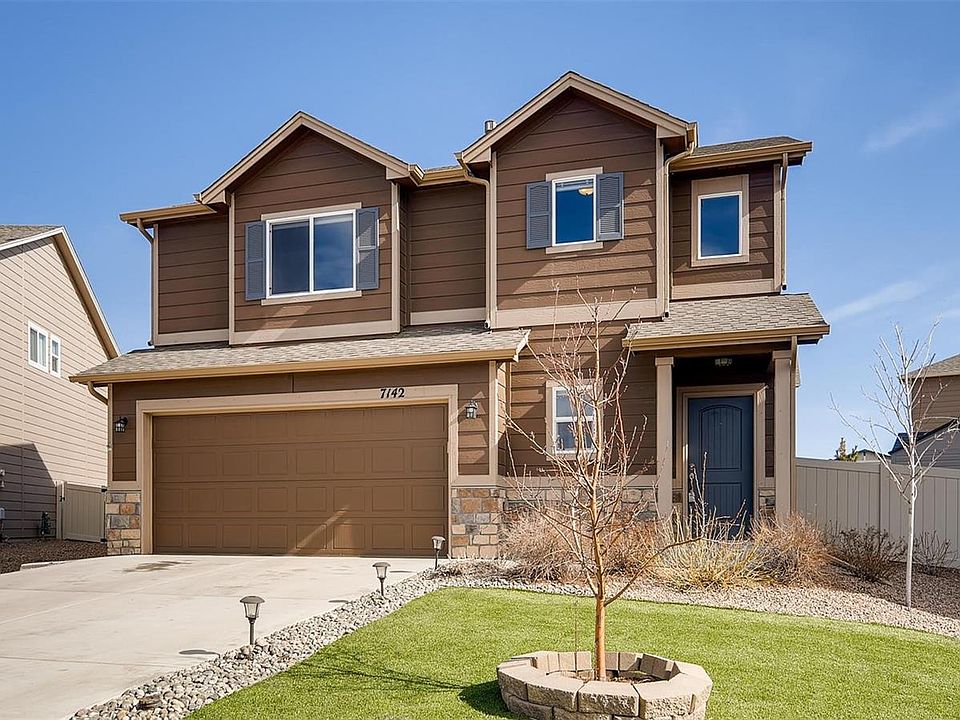 Lovely home on cul-de-sac with Pikes Peak views, 1 block from park and new pre-K - 8 charter school. This 3-bd, 3-ba open concept home is sure to impress with wood floors on main, kitchen with granite counters, double oven & walk-in pantry. Spacious master with bonus flex space and 5-piece bath. Professionally landscaped yard with large patio to entertain or relax. Features include wrought iron stairway spindles, granite counter tops, The Spacious Master Bedroom boasts attached 5 piece bathroom, walk-in closet, and bonus flex space, Top down, bottom up blinds throughout house, Specialty dog door built in glass patio door (the original glass is also in the garage),No maintenance front lawn (artificial turf)