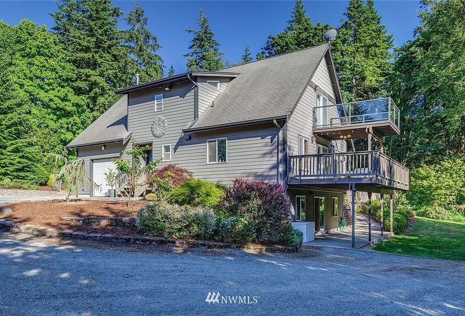 Wonderful home on a VERY private 2 1/2 acre wooded lot. This home has an extra-large master bed room and bath with a private deck. Three bdrms, loft & office. The ground level has a quaint 1 bedroom mother-in-law apartment with separate kitchen, laundry and a private entrance. Great open living / dining area with large deck that is perfect for entertain. The lot has a huge amount of parking space and is perfect for little ones and pets to play all day.