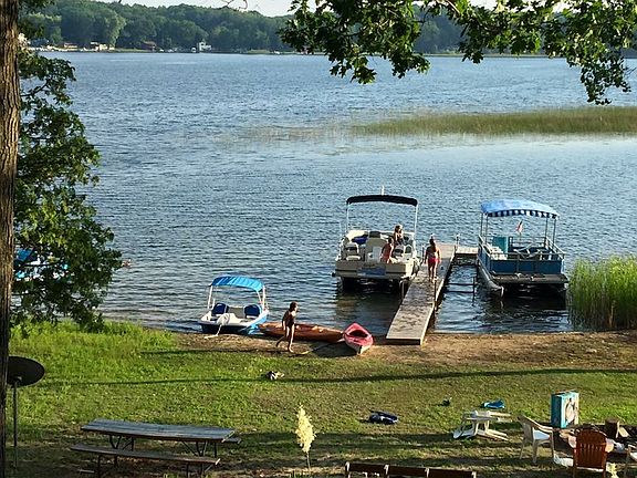 Wonderful Gun Lake home with 87 ft of sandy bottom private frontage and 2 docks. Gun Lake is a beautiful 242 acre all-sports lake great for swimming, boating and fishing and even has an island in the middle! This 3 bedroom, 1 ½ bath home has had many updates including vinyl siding, replacement windows, newer wall furnace, hot water heater and 5'' well. Nicely updated kitchen and bathroom. Spacious living room with beautiful views of the lake. Enjoy relaxing on the 2 decks with plenty of seating for everyone. Most furnishings are included in the sale making it ready for you to start enjoying the ease of lakefront living right away. Don't miss out, call today!