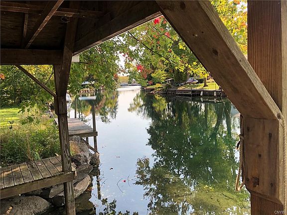 POTENTIAL is the word for this solidly built 3 bdrm & den, 1.5 bath home with 110 feet of water frontage on Owasco River with Owasco Lake boat access. Detached 2.5 car garage. Dock and boathouse. Needs interior updating to be a great home in a great location. Estate Sale. A must see home.