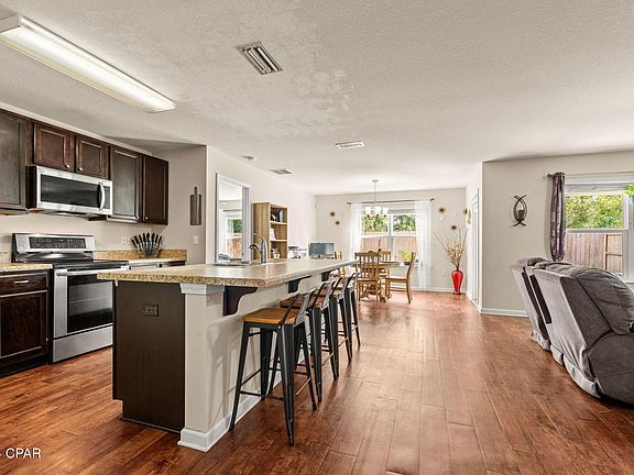 Beautiful 3 bedroom 2 bath home in the popular Barrett's Park community. Open concept in the living room, kitchen, and dining area. Kitchen features stainless steel appliances, a large island and pantry. The spacious master bedroom has a walk in closet and en suite with a double vanity, soaker tub, and a separate shower. In the front of the home are two bedrooms and a full bath. There's a covered patio off the dining room and a privacy fenced back yard. Home is located in Flood Zone X per LOMA.