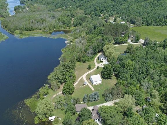WILSON LAKE - This is a one of a kind estate located on the northern Chain of Lakes. Its the type of property that speaks to your soul if you are a nature lover. This unique property features 480 ft. of beautiful lakefront on Wilson Lake, a Private Pond, and over 1200 feet of creek frontage, all on 25 acres. The loons nest nearby, the eagles dive for their daily catch and the deer come to the waters edge to quench their thirst. That's a normal day here at Whistling Pines. This charming farm house was updated in 1995, but much of the character of this home remains. Enjoy the lake views from your kitchen and living room and cozy up to the wood stove for that down home warmth in the winter time. The breezes from the deck overlooking both the pond and lake are unlike any other on a warm summer day. And on those hot days, cool off with central air! Located in the heart of the northern Michigan countryside surrounded by farms and charming small towns. The estate-campground offers the Main home, a guest cabin (200 sq ft), a two story40x40 barn and 14 State licensed camp sites. Keep or expand the camp ground or keep this private sanctuary all to yourself, nobody would blame you! The Chain of Lakes offers miles and miles of navigable waterways for boaters and fishing is abundant for anglers alike. The inland lakes are also ideal for kayaks and canoes where you can navigate up to 42 miles of waterways ending your voyage in Elk Rapids. The fresh air and fresh water, make for a fresh start to each and every day!