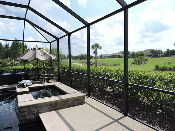 Custom Hanover 3/2/3 with custom pool and hot tub, all on the golf course with fabulous views. This home has been completely renovated and upgraded and does not even resemble the builders option list. Mahogany floors throughout except porcelain and travertine floors in wet areas. Custom kitchen design that is perfect for the home chef. Stone countertops everywhere, custom baths completely finished with latest finishes. Shutters, crown molding, custom fans and lighting, custom paint interior and exterior. Custom stone accents on front of home, pavers on driveway and walkway and elaborate landscaping. The lanai has large screened are, custom lagoon pool and hot tub with waterfall. Summer kitchen, electric fireplace with stone wall make this the perfect place to entertain. MUST SEE
