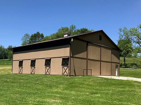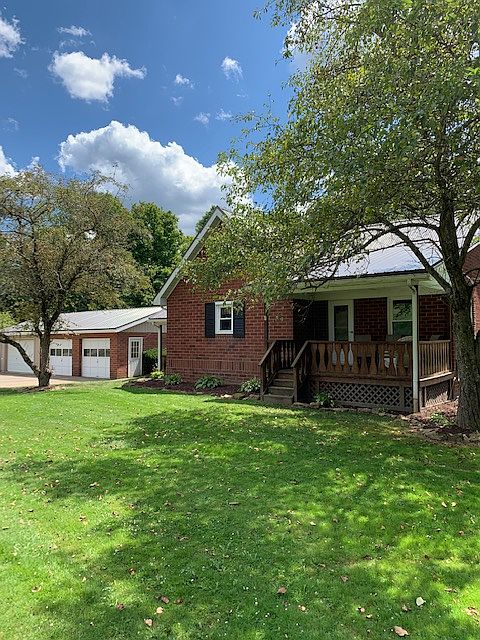 One and a half story brick home, 3Bd(one non-conforms), 2BA, remodeled bath(2019), metal roof on house and garage(2019), reverse osmosis water system(2015), central AC(2009), 22kW backup generator(2010), fuel furnace(backup)(2009). Water well(2008). Limited free natural gas from well. Detached 4-car garage(partial insulated, gas piped for heat, 220V elec.). 48x48x16 pole barn(4 custom horse stalls) adaptable to many uses with 6" concrete floor, heated tack room, water, electric Older 30x40 pole barn(partial concrete floor, water, electric) adaptable to many uses. Older 20x30 brick shed(electric feed installed not connected) needs some work Year round stream(Huff Run). Price is for the 8.5 Acres and buildings. Additional adjoining 27.8 acres available for total of 36.3 acres -Total $380,900