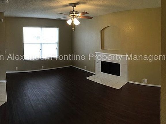 This 4/2.5/2 features living areas downstairs and all 4 bedrooms (including master) upstairs. All living areas and wet areas are highlighted with wood like plank flooring and all four bedrooms have been updated with new upgraded carpeting. The living room is complete with a beautiful fireplace and highlights the open concept floor plan with views and access to the kitchen. Off the u-shaped kitchen is a dining space and stunning dual french doors which open to the oversized fenced backyard. With a 1/2 bath, linen storage, storage space under the stairs, and laundry room, the downstairs living area is complete. Upstairs is a quaint extra bonus space and all 4 bedrooms. The master bedroom features an in suite master bath with deep soaking tub and dual vanities as well as a large walk in closet. Priced under market rent for a quick move in! This one won't last long. This property allows self guided viewing without an appointment. Contact for details.