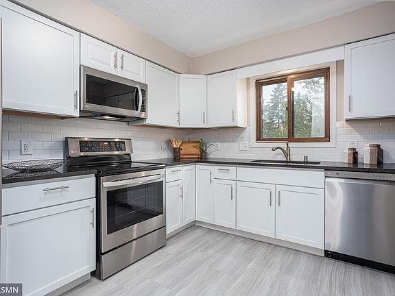 Move right in and enjoy this beautifully updated home conveniently located near several lakes, parks, and golf courses! Check out the new brand new kitchen - granite counters, stainless steel appliances, new cupboards, and backsplash. Plus there are 2 pantries and new LVP flooring! The bathrooms are beautifully updated as well and there is fresh paint and carpet throughout the entire home. The spacious master bedroom boasts room for a sitting area, a huge master closet (8x5!), a walkthrough en suite bathroom (Don't miss the laundry chute!) as well as a sliding door out to the deck/balcony - no better place to enjoy morning coffee or simply relax! You can also cozy up by the charming brick fireplace in the living room or head downstairs to the large family room for movie night. Other highlights include: skylights that fill the rooms with bright light, ample green space outside, and visitor parking right out front!