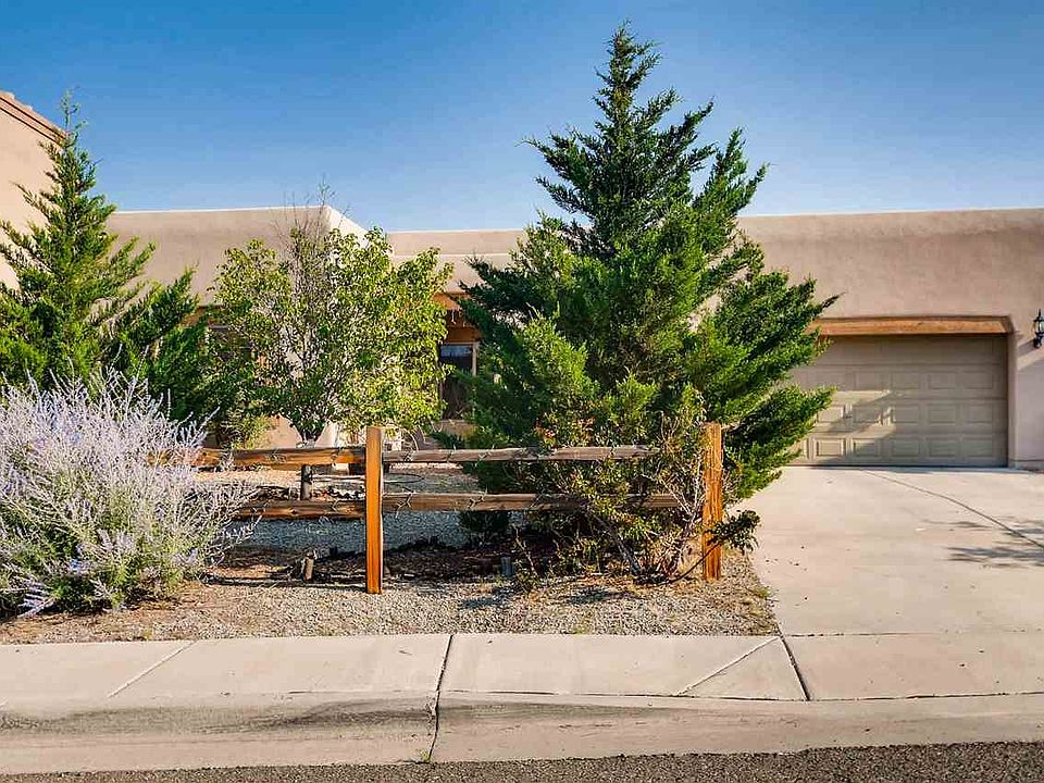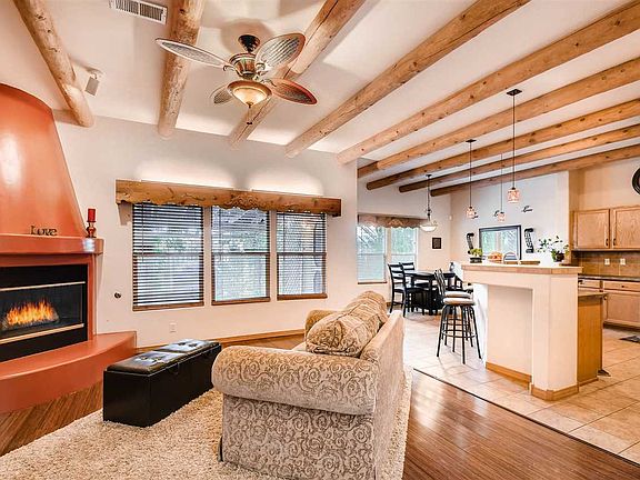 If you're looking for a charming, beautifully maintained home with a private garden and a lot of natural light, this is the home for you. One enters an open living room/dinning room with high beamed ceilings and new bamboo floors. A kiva fireplace graces one end of the living room with an open kitchen with an open kitchen with a seating bar at the other. Off the kitchen is a substantial pantry. The bedrooms are located down a hall off the living area. The master bedroom has french doors opening to the garden and a master bath with separate shower and double sinks. Skylights light up the hall and bathrooms, and large windows enhance the home. Central air conditioning has replaced an evaporative cooler, and the roof and stucco have been well maintained. There are solid wood doors throughout. The charming garden with roses and an apple tree is on drip. This is a wonderful home not to be missed.