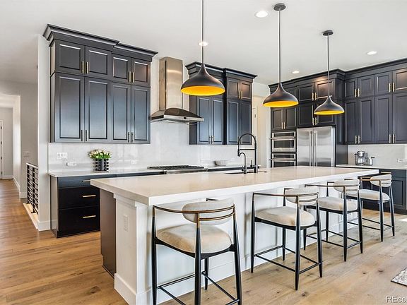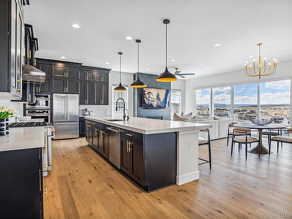 Situated on a premium lot with unobstructed 180-degree views, this stunning ranch offers exceptional finishes and meticulous quality in an unmatched setting. Built by Shea homes, the Legacy Plan from the Reserve Collection boasts endless upgrades and refined amenities that will impress even the most discerning buyer. Engineered hardwood floors, grand 10’ ceilings, custom Hunter Douglass window coverings and a neutral palette, seamlessly tie together the open floorplan. The well-appointed chef’s kitchen features GE Monogram smart appliances, an oversized kitchen island, quartz countertops, walk-in pantry, extensive upgraded cabinetry, and coffee bar. Step out the large slider to enjoy al fresco entertaining and endless sunset views on the expansive stamped concrete patio with built-in gas firepit. The spacious backyard has been professionally landscaped, fully fenced and backs to greenspace. Retreat to your main floor primary suite, complete with a 4-piece spa-like bath and huge walk-in closet. The grand chandelier over the staircase to the basement is a true showstopper and compliments the upgraded designer finishes and fixtures throughout the home. Smart home technology – ero wifi security, wifi-enabled garage door, thermostat and Alexa enabled light fixtures & door locks for homeowner’s convenience. Enjoy the many resort-style amenities of The Canyons including fitness center, clubhouse, parks, pool and trail system – with future amenities coming soon . Do not miss your opportunity to make this beautiful luxury home in The Canyons yours, book your showing today. Special Financing Incentives available on this property from SIRVA Mortgage.