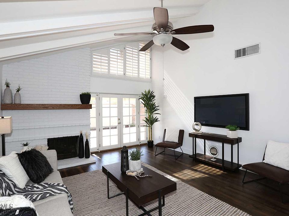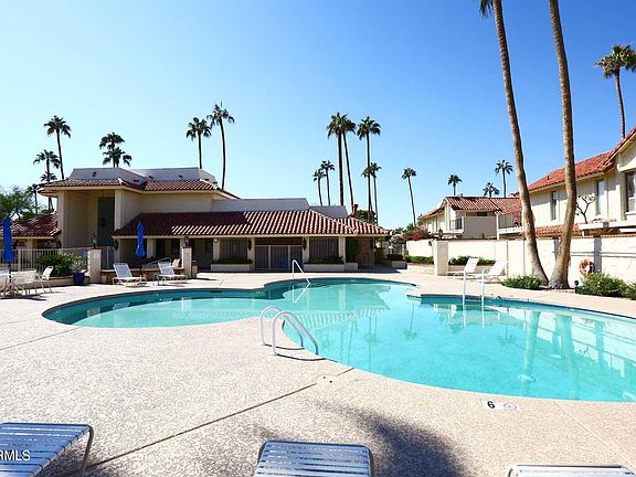 Location, Location, Location!! Charming neighborhood in the Scottsdale Rd corridor. Only minutes to some of the finest restaurants and shopping the valley has to offer! Minutes to Old Town Scottsdale famous for the art galleries, farmers markets, Fashion Square Mall and fabulous nightlife. Private courtyard entry and large wrap around patio with loads of outdoor entertaining space. Cozy 2 bedroom, 2 bath home with newly updated bathrooms, wood floors, interior paint and new HVAC in 2023. Nice size kitchen with stainless steal appliances including a gas Viking range, newer refrigerator. Open concept floorplan with high ceilings. Spacious master with French doors to the patio, 2 closets and a bonus loft . Beautiful community center with gym and event room as well as heated pool and spa.