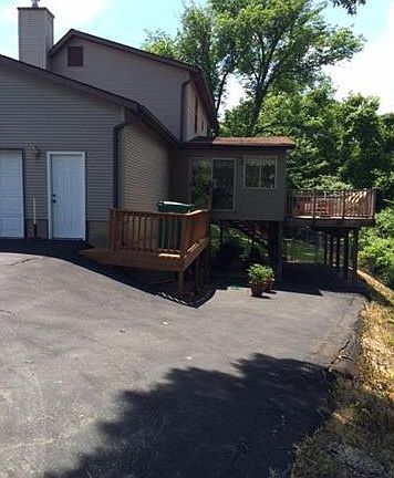 This home has a million dollar view. 2 story (maybe 1 1/2 story) home. Which features 3 bedrooms, 2 full baths, wood burning fire place w/ insert, and 2 car garage with opener. Best is yet to come. A huge all seasons room was built to take advantage of unbelievable view. Then doors open to multi- level deck also displaying the view. Hot tub on deck stays with home for new owners enjoyment. There is additional covered parking under sunroom and deck. Yard is partially fenced for those with children or dogs. Come look soon- location and view of this home, it won't last long.
