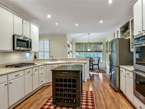 - Kitchen Features: Breakfast Bar, Eat-in Kitchen, View to Family Room, Kitchen Island, Pantry Walk-In, Breakfast Room, Keeping Room, Cabinets White, Wine Rack