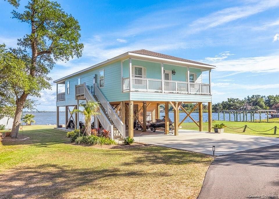 This little slice of paradise overlooking Moss Lake is the epitome of waterfront living. From the stunning views to the fishing and boating, here's your chance to experience Louisiana's finest pleasures right in your own backyard! This gem was built in 2019 with 2 bedrooms, 2 full baths, and over 1450 sqft of bright living space on the top floor. The kitchen features custom built cabinets with granite counter tops and top of the line fixtures and stainless steel appliances. The kitchen/living room area is open concept and has all the beautiful views. The master suite has a large walk-in closet as well as an oversized glass shower. The home's exterior is just as impressive, offering a large porch off the kitchen with views of the boathouse and Lake, tons of deck space and entertaining areas, perfect for hosting, frying up the day's catch or simply enjoying the breathtaking sunsets and views. The ground floor has a 1/2 bath, shower area, and lots of storage space. The boat house is precious and has a large screened in patio perfect for relaxing and drinking coffee by the water. Boat house includes living quarters with a full kitchen, bathroom, and large room for indoor entertainment or overnight guests. From the boat house take a stroll on the wooded walkway to the covered boat slip with lift and fish cleaning station or around the large bulkhead which can be used for additional boats and/or guests. This property has so much to offer a buyer. Don't miss out on this must-see property.