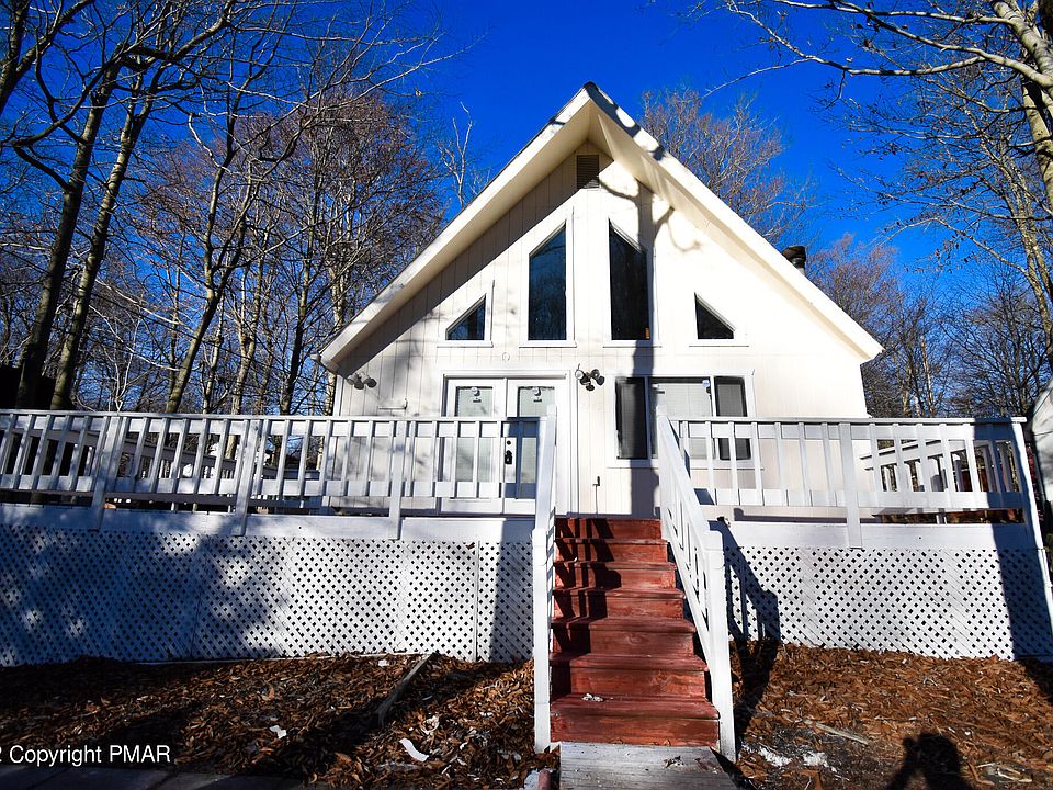 Check out this beautifully remodeled 3BD/2BA mountain chalet located in an amenity filled, gated, lakeside community. Just minutes away from all major Pocono attractions such as Mt. Airy Casino, Kalahari & Camelback Ski Resort. Brand new flooring, paint, bathrooms, kitchen, SS appliances, fixtures & so much more. Perfect as a short-term rental investment property, vacation home or a primary residence! This home features tall cathedral ceilings & skylights offering a bright and airy living space, large deck for entertaining, & shed for storage. Look no further, this is the one!
