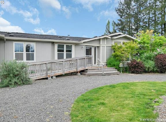 Own 27 + acres of prime farmland.Income producing 25 acre Hazelnut Orchard.You own the land and lease to local Farm who maintains and harvest's and you receive 25%.Currently on a year to year lease.Property has 1999 Triple wide home with large oversized garage. Beautifully landscaped with Greenhouse, raised beds,grapes,Fruit Tree's and garden area.