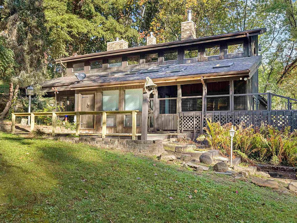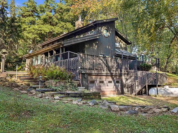 Sitting in the heart of Ogle county among the rock river region this property has so much to offer. As you enter the gated lane the driveway winds through the tall timber. Tucked privately off the road you have the home, outbuilding and pond. The one-of-a-kind home sits up on the hill overlooking the pond and driveway. As you come up the stairway you are greeted by tons of entertaining spaces on multiple decks. Entering the home you have an open floor plan from the kitchen and dining area into the family room. Floor to ceiling limestone wall and fireplace that was locally sourced as this area was being developed. Tons of windows and natural lighting make you feel like you are in the middle of nowhere. Hot tub room that could also be used as a greenhouse. Main floor has a half bathroom off the kitchen. Main floor master with master bathroom and walk-in closet. Upstairs you have two additional rooms and another full bathroom. Lower level offers garage, laundry room, and storage room. Pond out in the front of the home that could be stocked with fish. 36x64 outbuilding with lean. 20 acres of tillable ground currently cash rented out. 25 acres of timber. Excellent deer habitat on this property and surrounding properties. Lots of wildlife frequent the property including deer and turkey. Located west of the Lost Nation golf course, east of the Rock River, and close to all the amenities Dixon has to offer. Close to Castle Rock State Park, Nachusa Grasslands, Franklin Creek State Natural Areas. Excellent opportunity for deer hunting, could be converted to horse property, or vacation house. Quick access to multiple interstates, only an hour and half from Chicago.
