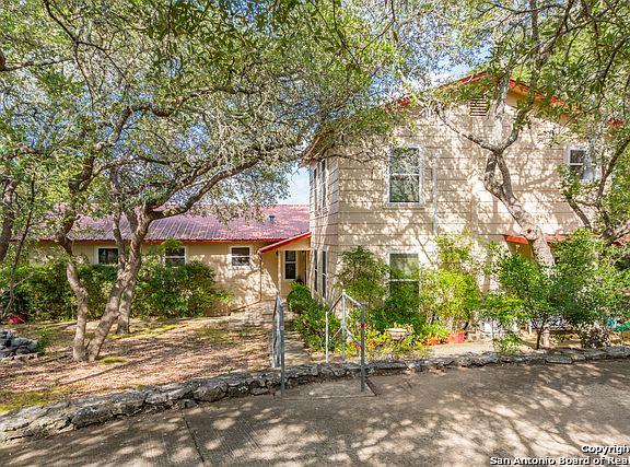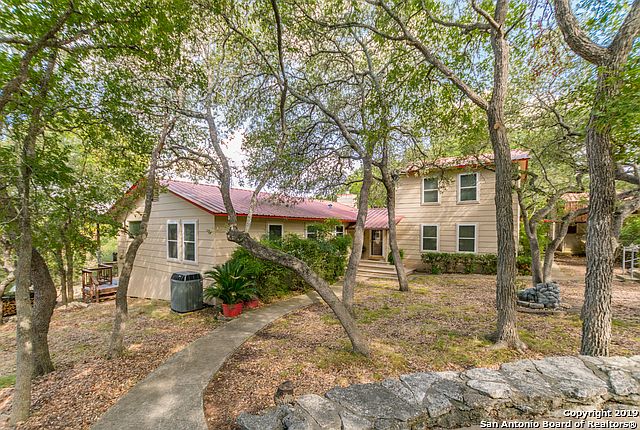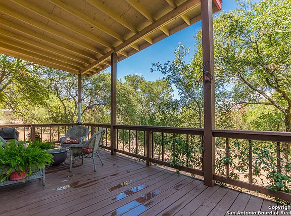 Beautiful home on 5.48 UNRESTRICTED ACRES close to Canyon Lake, Guadalupe River, Gruene and Creekside shopping! Home has 3 levels of decks to enjoy views of the mature trees surrounding the property. There's a separate metal building, barn AND carport for your boat/travel trailer, 2 HUGE utility rooms with plenty of storage, multiple sitting areas, kitchen that opens to the living room and a custom electric gate that leads you to your dream home! Rare opportunity to live the country life while close to town
