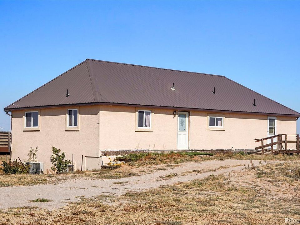 Unbelievable opportunity on 40 acres with an almost 3,000 square foot stucco rancher w/ walk-out basement, loafing shed and corral. Fenced separately with pastures. No covenants or HOA. Fantastic Pikes Peak and mountain views. Unfinished walk-out lower basement with room for additional bedrooms, baths and a family room. Domestic well. The property has low cost agricultural taxes. The main level is bright with large windows, hardwood floors, a spacious kitchen with tons of cabinetry, vaulted ceilings, a walk-out to the back deck and a wood burning stove. Zoned for horses, cattle, other livestock and outbuildings. Additional homes are allowed to be built. Water rights are intact. Short commute to Colorado Springs, Falcon or Ellicott with great paved county maintained access on Judge Orr Road. Well maintained acreage with great grasses and tiered garden beds. Quiet location with large parcels surrounding for privacy. Amazing chance to purchase large acreage close to Colorado Springs.