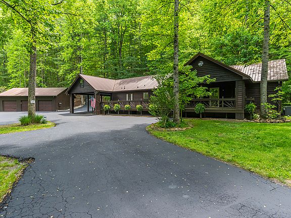 Let your imagination run wild w/the endless possibilities at this 27+/- acre park-like property only moments from the charm, crafts, & hiking of Berea, Renfro Valley entertainment complex & less than 1-hour from two of Central Kentucky's most popular lakes, & quick access to I-75. Perfect investment opportunity for vacation rentals or wonderful accommodations for multi-generational families. Enter your own private paradise through the automatic gate leading to two sprawling ranch homes (3BR/2BA + 4BR/2BA). Both are wrapped w/wood siding to give a rustic cabin feel, gas fireplaces, fully equipped kitchens, & tons of living space. Enjoy outdoor life on one of the many covered and screened porches/patios perfect for relaxing. A 3rd guest cabin boasts kitchenette, bunk beds & full BA. 2-oversized carports provide ample covered parking. Above each carport lies an unfinished loft space for additional accommodations. A 3-car detached garage also has RV hookup. Travel up the hill to a beautiful forest of mature trees, hiking & ATV trails, large field, wildlife such as deer & turkey for observation or perfect hunting getaways. Updated metal roof, HVAC, flooring, security systems, & more