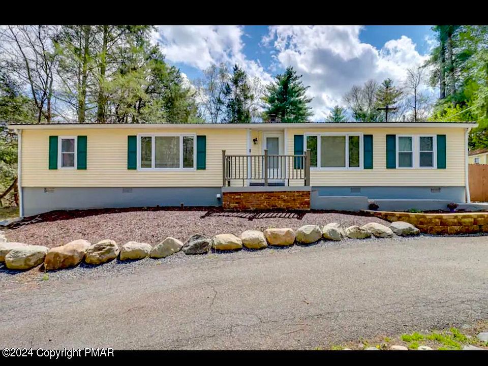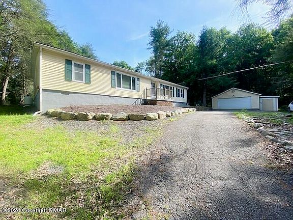 WELCOME TO PARADISE! This is a sprawling ranch with a huge deck, pool and hot tub, with a view of the robust Marshalls Creek! This is a great location for a primary home or vacation! This SMART HOME features Central air/ AC, hardwood/ tile flooring, a metal roof, 2 car garage & 3 sheds! There is NO HOA!