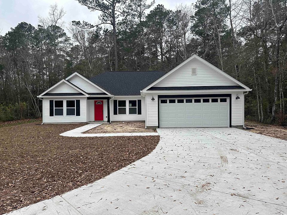 This NEW home features an open concept living room and kitchen that are great for entertaining. The open concept kitchen features stainless appliances with large island and granite countertops. Both bathrooms have granite countertops. This home also features low maintenance vinyl flooring in all areas. 30 year grade shingles, double hung windows, HVAC 3 ton, home has a lot of light and view of the woods behind the home.