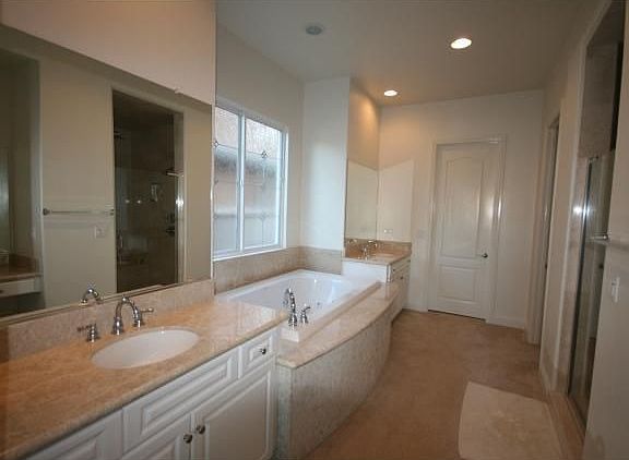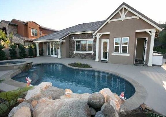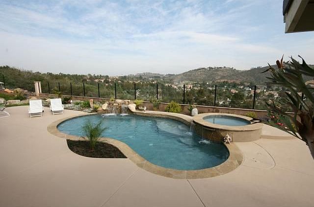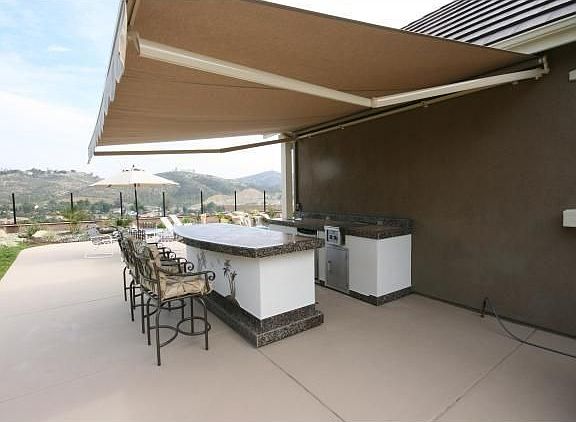 Rarely available SINGLE STORY beauty with awesome views and a backyard that is perfect for entertining with resort-style pool and spa--the pool has an exercise jet system that allows you to swim against the current and stay in shape! There's an outdoor kitchen with a retractable awning that serves as party central. There is custom lighting outside, a speaker system, and even an outdoor shower. The lot offers extreme privacy as it is surrounded by natural space and is at the end of a culdesac. (Cont.)