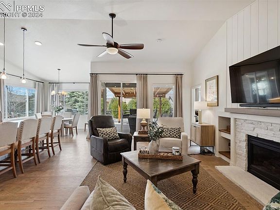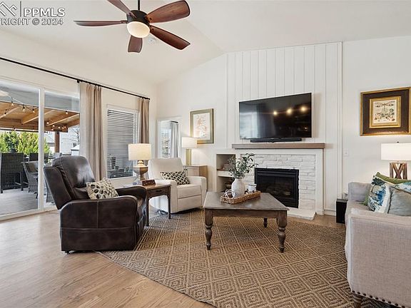 Beautiful, move-in-ready ranch in super-popular Banning Lewis Ranch. You won’t need to do a thing except relax on the amazing new deck and enjoy this extensively, intelligently renovated (2022) home featuring four bedrooms, an office and three bathrooms. • Easy-care, French oak-stained hardwoods throughout first floor, including bedrooms, office & kitchen • Entire interior (all rooms and closets!) professionally painted • Custom pantry • Kitchen cabinet organizers • New roof (July 2022) • All-new lighting (LEDs, new chandeliers, pendants, vanity lighting) • Stunning primary bath, completely renovated: Huge, custom shower; double-sink vanity, elegant lighting; tile flooring • Guest bath: New tile floor, vanity and lighting • Downstairs bath: New tile floor • Awesome custom-built deck (2023) with partial roof, featuring TimberTech composite decking • New (2023) gas grill included! • Nest thermostat • Guardian by Elexa automatic water heater shutoff • Three-speed blower in fireplace Other features: • Professionally landscaped, easy-care backyard • Irrigation front and back • Storage shed • Charming front porch Banning Lewis Ranch (BLR) is one of the most popular developments in the Springs, and it’s easy to understand why: There’s easy access to everything — military bases and contractors, grocery stores, healthcare, shopping and more. The property features extensive land, paved sidewalks, two pools (splash and regular), a clubhouse with exercise facilities, tennis and pickleball courts, soccer fields and a special events facility. Outstanding D49 schools, including Banning Lewis Ranch Academy, Banning Lewis Ranch Prep Academy (K-12) and Inspiration View Elementary. Unique in its class, this ranch offers the opportunity to move into the quality of life you’ll love forever.