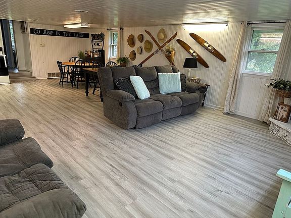 This is your chance to have an unbelievably affordable home on Twin Lakes! Use it as your main dwelling or rent it out and make some money! We made over $5000.00 in rental income in one summer alone- can provide proof!! This home was rented out for over 20 years with lots of repeat customers that I will send your way if that interests you! Also willing to negotiate the home coming fully furnished! 1 bedroom on main floor and a large loft upstairs with room for multiple beds! Open concept living/dining with the potential to have a tall vaulted ceiling!! Brand new LVP waterproof flooring & new carpet thru out. Washer/dryer and oven stay with the home. 1 car attached garage to store your kayaks and your golf cart! PRIME LOCATION with beautiful views of North Twin across the street AND views of South Twin! Jump on the bike trail that runs in front of the house & enjoy all that Twin Lakes has to offer! This home sits on leased land which is $4000 per year. I can send you a copy of the land lease upon request. The land lease terms are negotiable and easy to have my lawyer change if you are wanting to add or negotiate any of the terms. See picture below with white outlined area marking out your property line. LARGE yard for plenty of room to build or add on!! Might also entertain a rent to own contract with 20% down. Call or text Jessica at 712-210-3443 for more questions or to schedule a showing!