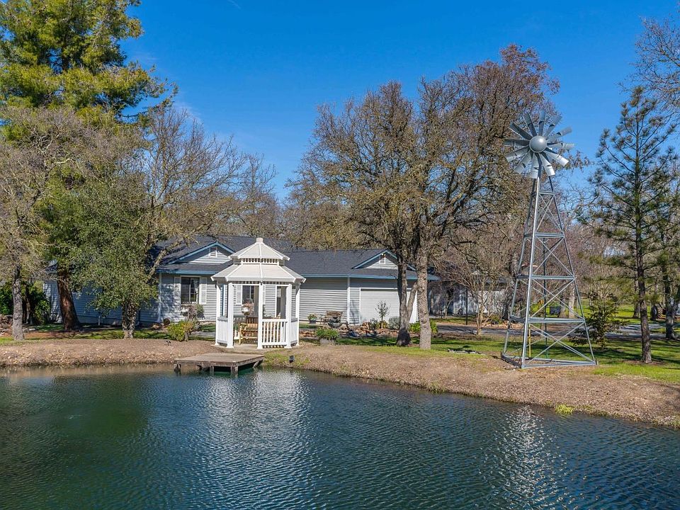 Bring the horses to this impressive foothill horse property. You'll appreciate the features and amenities of this move in ready property located on a level 5 acre parcel with charming gazebo overlooking the year round pond w/ windmill aerator and auto float. Seasonal creek on the property and a lovely setting with so much to offer. Horse amenities include: 3 stall barn w/feed room, electrical and auto water, indoor & outdoor feeders. Water to pasture water trough, square pen and barn. 170' x 90' riding arena, paneled square pen and electric fencing around pasture. When you are not out riding or training with your horses, enjoy the peaceful setting and in ground sport pool with vinyl fencing and paver patio area and relaxing spa. Extended fenced backyard area for your furry friends. Inside features of the cozy single story 4 bedroom 2.5 bath home with over 2000 sq ft of living area include: 2 x 6 construction, new roof in 2022, new water proof laminate wood flooring in 2021, granite kitchen and bath counters. Solid core pine cabinetry and interior doors. Central heat & air and wood burning stove. Spacious master bedroom with outside access, walk in closet and large walk in tile shower and dual sinks.Good size guest bedrooms, indoor laundry, new well pump in 2021, new pool pump in 2022, vinyl fenced backyard and pool area. 5 new dual pane windows & springs. Instant hot water feature for kitchen & baths. Attached two car garage and detached 22x30 shop/garage.New well pump in 2021 and new pool pump in 2022. Enjoy nearby riding trails at Camanche reservoir and recreation area at New Hogan. Easy access to Highways 26 & 12. No HOA or fees here. This is the perfect place to call home.