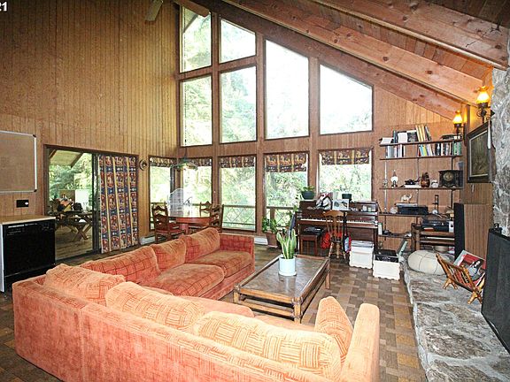 Inviting cabin w/warm-hued woodtones,vaulted ceiling,stone fireplace,huge windows and great room with open floor plan to offer lots of room for family&friends to play at the lake!This cabin has many sleeping areas/huge loft,it's charming top-to-bottom!History reigns as this was one of the first cabins built.Lg covered decks,great place for gatherings,weekends or FT living!90 mins from Portland to paradise!New much lower price and motivated sellers!