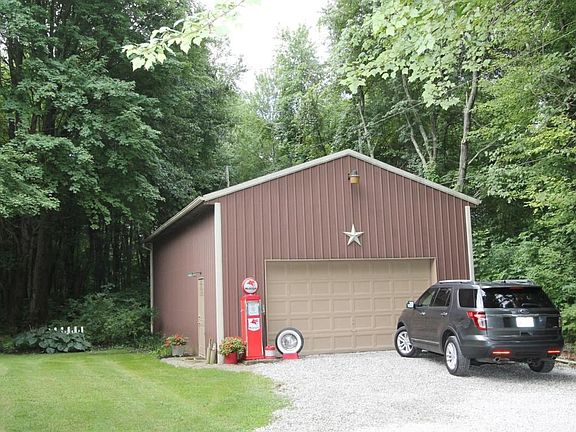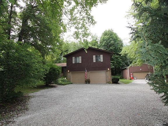 Tucked back from road in a parklike setting this home has a 2 car attached garage and a pole barn that holds 4 cars! Home has hardwood floors at entry, huge living room and a good sized formal dining room! Eat in kitchen with stainless appliances and window above sink that overlooks the backyard! Family room with fireplace that has a log woodburning insert opens to large 3 season room!There is a laundry and 1/2 bath right there too! Upstairs there is a good sized Owner's bedroom with a barn door leading to owner's bathroom. There are 3 other good sized bedrooms upstairs as well with another full bath! Oversized attached 2 car garage with entry to basement! Make it a true man-cave! 20'x40' pole barn! Gorgeous backyard goes into woods and there is a deck and firepit! see A2A for tax info.