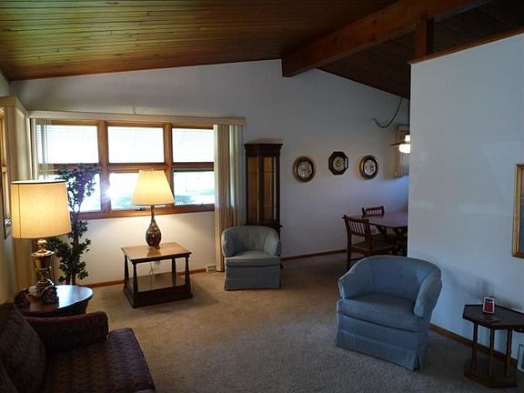 Charm and character are found in this spacious tri level home on quiet, tree-lined street in south Hammond. The formal living room and dining room have a cathedral pitched, beamed ceiling which opens to the updated Kitchen. The kitchen was remodeled to offer great counter-space for food preparation and cabinetry for storage and pantry. Upstairs there are three bedrooms with hardwood floors exposed in one of the rooms and a full bathroom. The lower level offers a cozy Family room with new carpeting, a laundry room, and three quarter bathroom. A large, main level home office/den area with its own entrance could also be used for related living. The backyard is impressive (lot is 195'deep). Updates: Roof 2001, garage door 2001, refrigerator 2008, drain tile 2011.