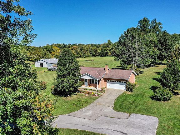 Picturesque all brick ranch with 2 car garage, updated appliances, new carpet, freshly painted, all situated on a serene country like setting with lots of lush trees including fruit trees, walking trails, complete with a fully stocked pond, spacious pole barn with 220 elec. all situated on nearly 6 acres of land. Don't miss out!