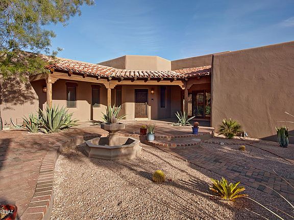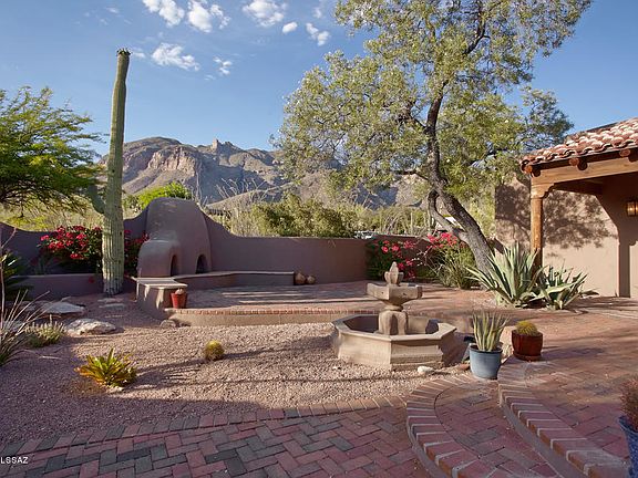 High in the Catalina Foothills on a Large Private lot at the end of a cul-de-sac : 2 minutes from Skyline/Campbell - Short Walk to Manzanita School : Adjacent to the Giant Campbell Wash : Extraordinary Mountain, City & Sunset Views, truly Extraordinary! : An Attractive and Very Comfortable Sante Fe with Gorgeous Areas for Easy Enjoyment of Indoor-Outdoor Living : Large Kitchen Open to Spacious Family Room- both are adjacent to Large Covered Patio for All Day - All Night Recreation, Relaxation, Fun & Dining : Spacious Master Suite - Large Bedroom with Fireplace + Extra Room that could be Exercise, Office, or... + Private Bath with Mountain Views & Large Walk-in Closet : 3 Additional Bedrooms & 2 Baths : 3 Car Garage : Gorgeous Pool & Grounds: Move-in ready. Don't miss the drone footage