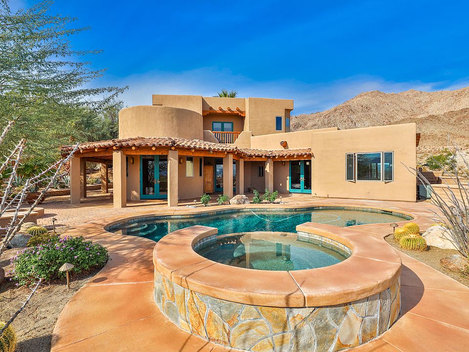 Discover anew in the heavenly Cahuilla Hills this Santa Fe custom built paragon estate. Perched atop 3/4 of an acre with panoramic desert views, including Stone Eagle fairways & surrounded by mountain terrain, this home boasts over 3200 SF of living space with 3 bedrooms & 2 1/2 baths in the main house, and a newly finished private, detached casita. As you enter thru the front door from your gated, private driveway, you're greeted with hand crafted latilla ceilings, a kiva wood burning fireplace, large format saltillo tiles & french doors leading out to the patio & garden. The dining room is surrounded by authentic wooden pillars from New Mexico overlooking the pool & spa with glorious mountain views in the distance. The perfectly positioned rotunda kitchen enjoys 180 degree views and enjoys a natural stone backsplash & center island. Retire to the master suite with fireplace, large walk-in closet, new carpet and dual balconies to soak in sunrises & sunsets. This home is offered by the original owners who recently added a spacious guest casita with separate entry and one car garage. The amphitheater-like backyard creates a tranquil and relaxing space for gardening or a private soiree and the wrap around patio leads you to the front where you will enjoy poolside entertaining with firepit, outdoor dining space, & unobstructed views. Recent maintenance includes HVAC, new water heater & variable speed pool pump. Come discover the marvel of Cahuilla