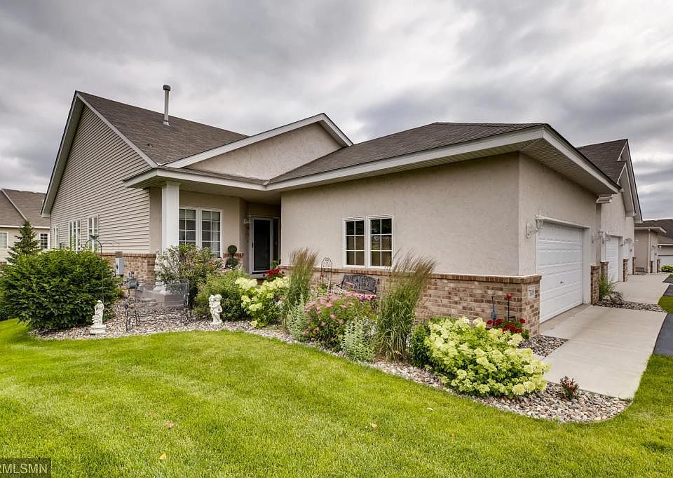 Great opportunity to own an end unit rambler in high-demand Crossroads. Minutes from everything! Large kitchen with tons of cabinets. Large rooms with gas fireplace. 4 season sun room walks out to deck. Main floor master with his/hers vanities. Walk out lower level with huge family/amusement room, bedroom and bath. Extra large storage area!