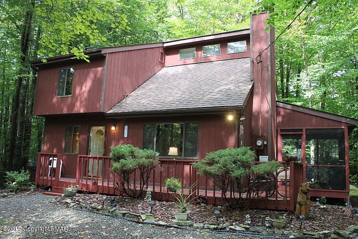 Looking for a cozy home in amenity filled Arrowhead Lake? Home has circular driveway, ample outside deck space, fun screened in porch, 3 bedrooms, 2 bathrooms, spacious loft space, lots of room for everyone to enjoy the mountains and start creating memories. Community has 2 lakes, 4 beaches, 3 pools, playgrounds, tennis, basketball, etc. Be close to all major Pocono attractions - shopping, skiing, casino, waterparks, hiking trails. Please make an appointment today to see your new getaway.