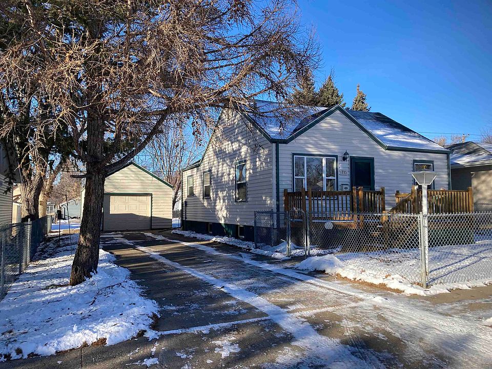 This is a sweet home with lots of character and charm!!  Please check out all the space this home has to offer!!  A lot storage thru out the home!!  You walk into the large entry way that has room for storage and stackable washer/dryer(could use side by side too)!  In the kitchen are cute white cabinets with decorative soffits...the appliances are newer and in great condition...from the kitchen you go into the dining room that has a solid wood breakfast nook and china cabinet that stays!!  You will be surprised how large the living room is and you can enjoy the wonderful electric fireplace!!  Off the living room are the the 2 bedrooms and 3/4 bath(newer shower)...The basement is partially finished and has lots of potential!!  The yard is fenced in the front and back!!  Nice vinyl siding!!! Age of shingles is unknown but think around the same time as the siding.  Nice oversized detached single garage has opener in the entryway...