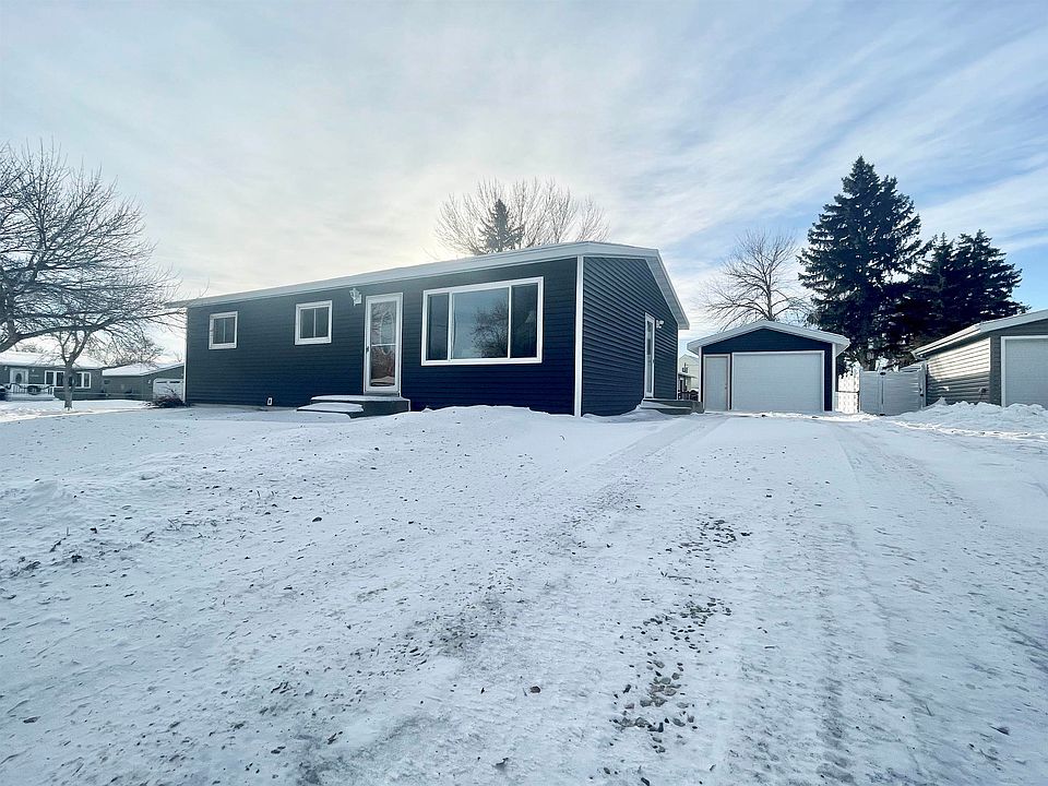 All the big projects are done with new windows, siding and roof. The interior is just waiting for your personal touches to update and make your own. The kitchen features custom cabinetry with eat in dining space that leads into the large living room. Down the hall you will find 2 bedrooms and a full bathroom as well as the largest primary bedroom with attached 1/2 bathroom. The unfinished lower level has tons of space to make into exactly what you want. Plumbing stubbed in for future bathroom. The large lot size is partially fenced and the long driveway leads to the 14x22 garage, with new roofing and siding as well. All this located in a convenient NW neighborhood.