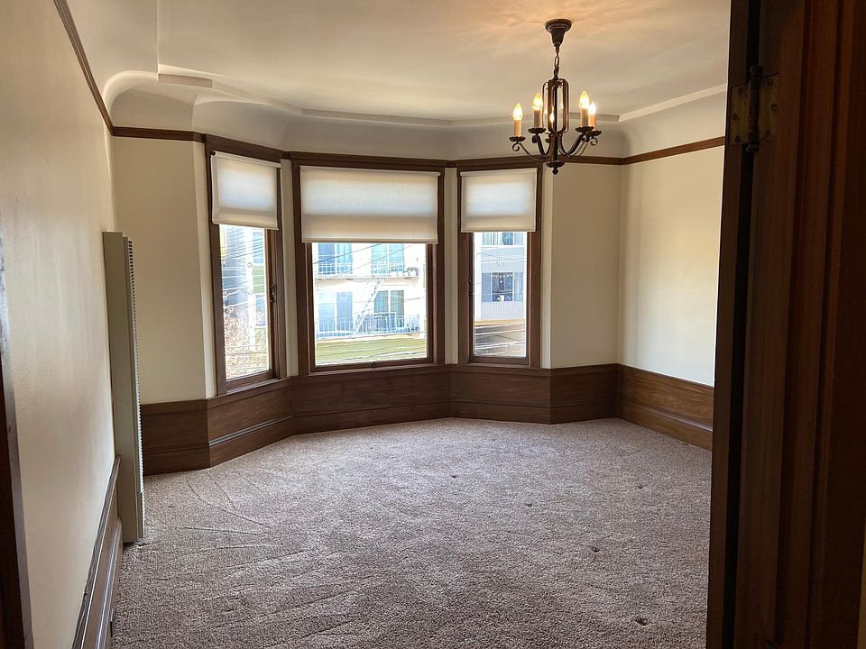 New refrigeratorLarge edwardian style apartmentLots of cabinet spaceCrown moldingsEat in kitchenOriginal wood panelingTons of storage