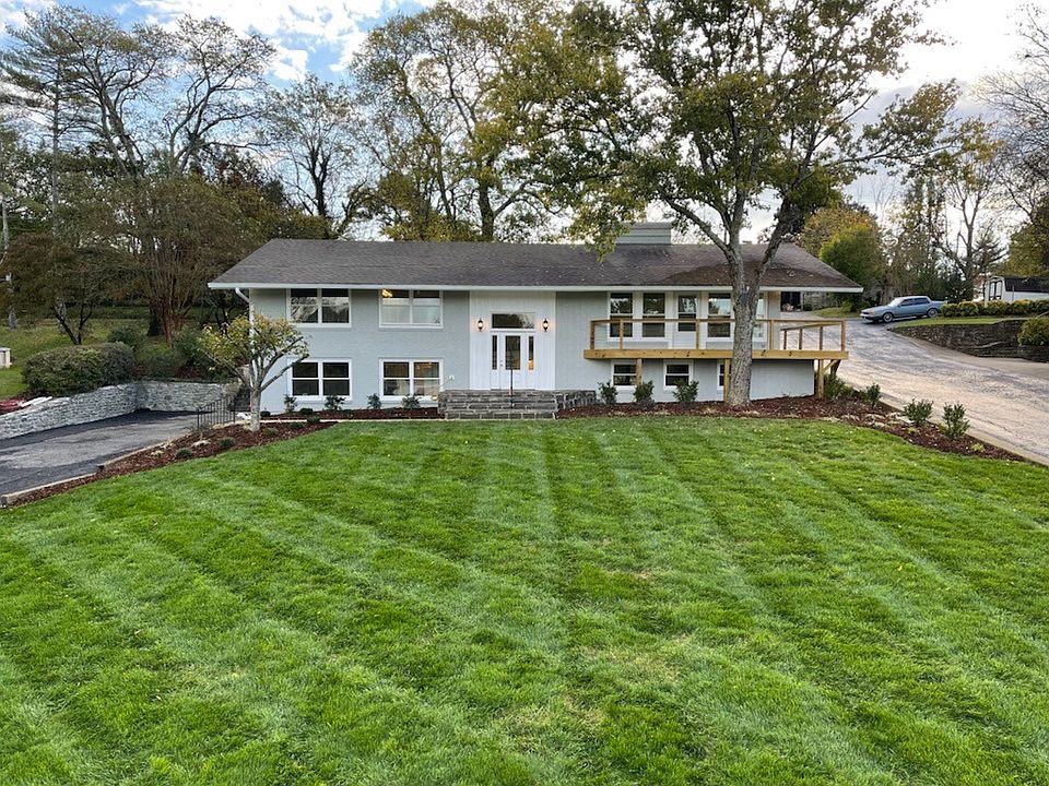 Beautifully renovated home, Kitchen w/new SS Appliances, cabinets, countertops, new flooring & lighting throughout, bathrooms completely redone, main BA has walk in tile shower w/rain head, double vanities, 2nd BA is Jack & Jill w/new tub, tile & vanity, new windows, plumbing & wiring, downstairs lg. room could be office or 4th BR, 3rd BA, finished garage w/large area for workshop or expansion, outdoors rockwork, deck, stone back patio, outstanding landscaping & more! 1 yr Home Warranty.