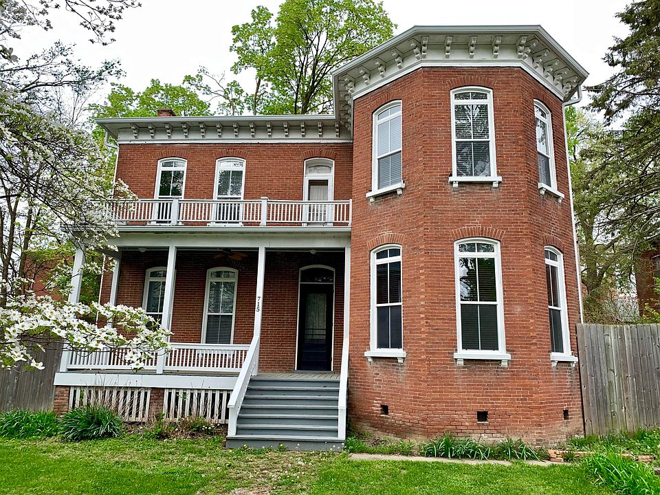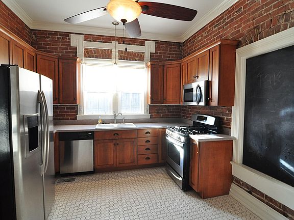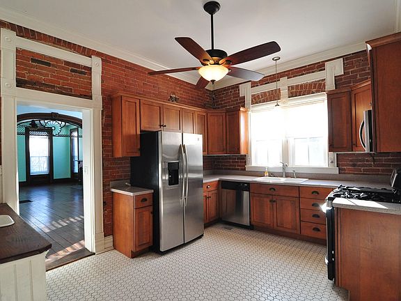 In recent past this home has had NEW windows, electrical, plumbing, roof, hard-wired smoke detectors, and zoned HVAC. Kitchen with brick walls, solid surface counters, Mark Hall cabinetry, stainless steel appliances including gas stove. Woods floors, pocket doors, beautiful coal fireplaces, and many wood accents. Mudroom, privacy fenced yard, and parking in the back. 36.5x16 brick building included.