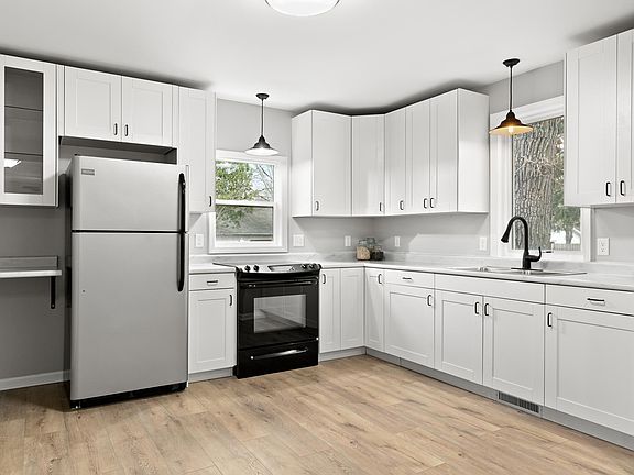 Step into this charming, newly renovated 3-bedroom home that combines modern updates with cozy living. With fresh vinyl siding on the exterior, this home offers excellent curb appeal and easy upkeep. Inside, you'll find an inviting open-concept main level that seamlessly connects the living and dining areas to the updated kitchen, creating a great space for everyday living and entertaining. Enjoy cooking and entertaining in a beautifully updated kitchen featuring brand-new cabinetry with soft-close drawers for a sleek, modern touch. The three bedrooms are perfect for those who prefer a more intimate space, with plenty of natural light and character. The full bathroom has been thoughtfully updated with contemporary finishes. Relax and unwind on the quaint front porch, or enjoy the convenience of living in a welcoming neighborhood. Recent renovations throughout provide peace of mind, making this home move-in ready. Key updates to the home include a newer furnace, water heater, siding, windows, and flooring. Ideal for first-time buyers or anyone looking for an affordable, stylish home, this property is ready to welcome its next owners.