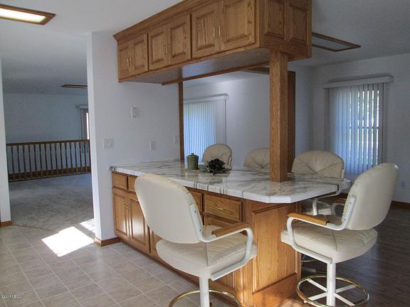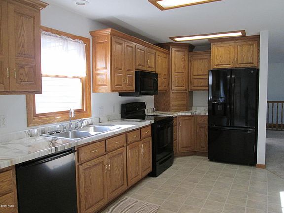 Beautiful home and garages galore! One of a kind! 5 bedrooms,4 baths, tons of custom cabinets with roll outs, extra living quarters upstairs, jet tub, sauna, new paint, carpets and counter tops, shingles 1 year old, underground sprinkling, large attached garage plus two detached garages 24x30 and 40x36 and finished and heated with 1/2 bath. Lower level all finished with sauna and pool table. Maintenance free deck and steel siding. Close to schools. Great landscaping! This listing is co-listed with Hoftiezer Real Estate