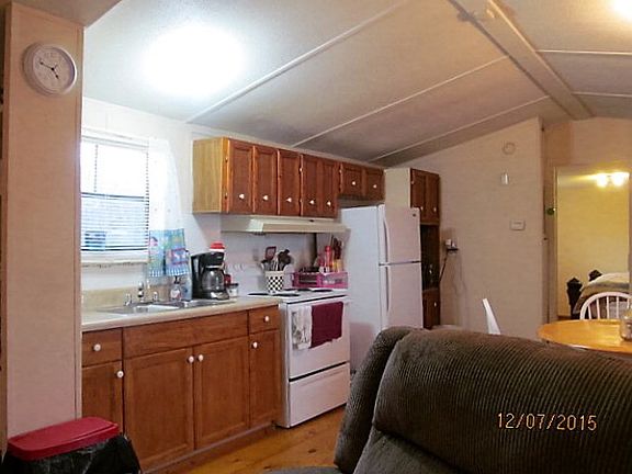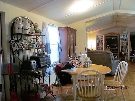 Older mobile home in good condition. Nice country Setting. Very open plan w/cathedral ceilings in living room, kitchen/dining combo. Built-in book shelves. Beautiful wide plank hardwood floors. 3rd bedroom perfect for office or nursery. New metal roof installed in 2012. Deck just added in 2015. Vinyl underpinning. Security system. Private lot.